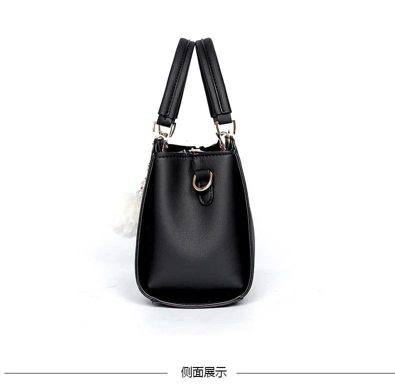 Black Leather Casual Tote Bag
