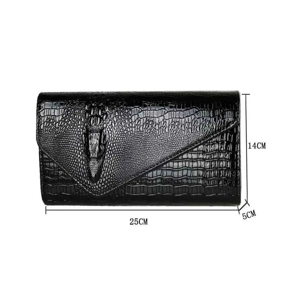 Make a luxurious statement with this crocodile-textured leather chain clutch bag. Featuring elegant design and premium materials, this bag is perfect for sophisticated occasions.